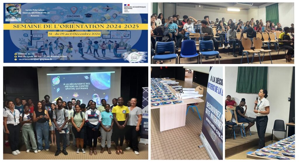 Encore cette année, l’équipe du BLC a animé trois ateliers sur les métiers du Centre Spatial Guyanais, dans le cadre Semaine de l’Orientation au Lycée Gaston Monnerville.