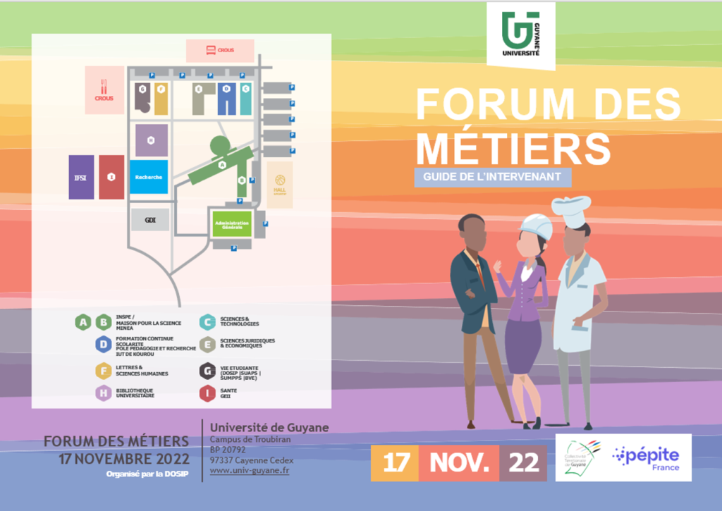 L’Université de Guyane et la Collectivité territoriale de Guyane ont organisé la dixième édition du Forum étudiant des métiers et des carrières qui s’est tenu ce 17 novembre à l’université de Cayenne. Comme thème abordé lors de cette journée « LA FORMATION ET LES MÉTIERS AU CŒUR DU DÉVELOPPEMENT », l’objectif de ce forum a été de créer des rencontres interactives entre étudiants, enseignants et cadres d’entreprises ou d’administrations.