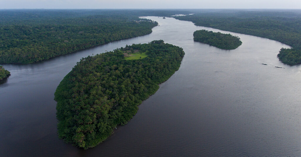Elle s’étend sur 84 000 km2, soit 1/6e de la France, aussi grande que l’Autriche. La forêt équatoriale qui couvre plus de 90%